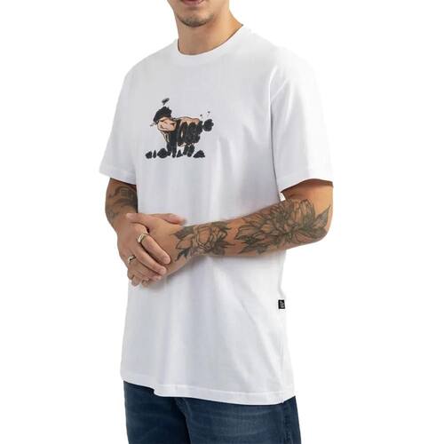 Camiseta Lost feita em meia malha 30.1, estampa frontal e etiquetas personalizadas.