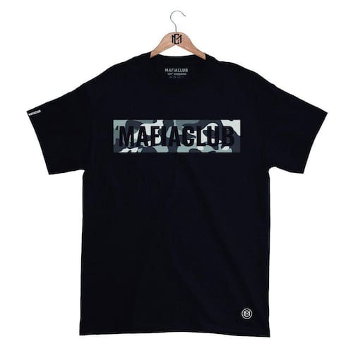 Camiseta Mafia Club Gola Redonda Estampa Camuflada Streetwear fio 30.1 Penteado - Preto - P