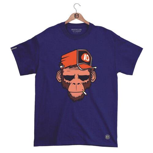 Camiseta Máfia club Gola Redonda Estampa MONKEY Streetwear fio 30.1 Penteado. - Azul Petróleo - GG