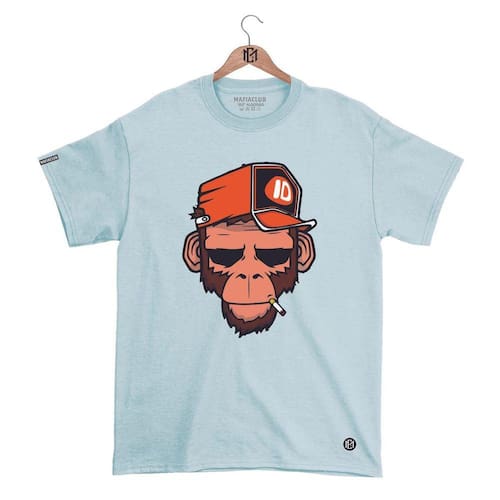 Camiseta Máfia club Gola Redonda Estampa MONKEY Streetwear fio 30.1 Penteado. - Azul Claro - P