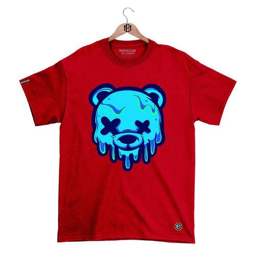 Camiseta Máfia club Gola Redonda Estampa URSO XX 2 Streetwear fio 30.1 Penteado. - Vermelho - XG