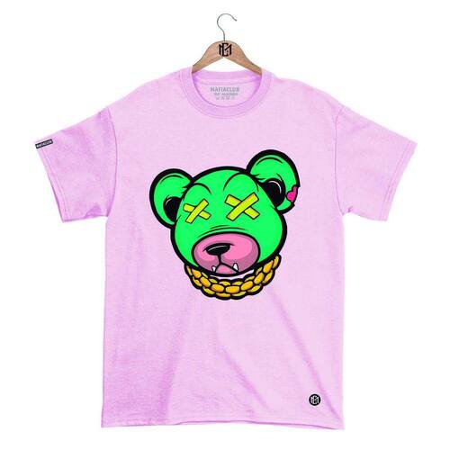 Camiseta Máfia club Gola Redonda Estampa URSO XX 3 Streetwear fio 30.1 Penteado. - Rosa - P