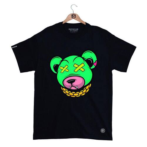 Camiseta Máfia club Gola Redonda Estampa URSO XX 3 Streetwear fio 30.1 Penteado. - Preto - M