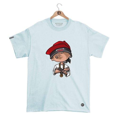 Camiseta Mafiaclub Gola Redonda Estampa CARA MC 2 Streetwear fio 30.1 Penteado - Azul Claro - M