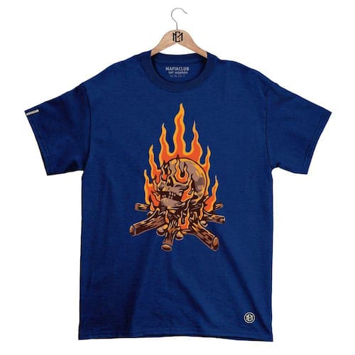 Camiseta Mafiaclub Gola Redonda Estampa CAVEIRA FOGO Streetwear fio 30.1 Penteado - Preto - XG