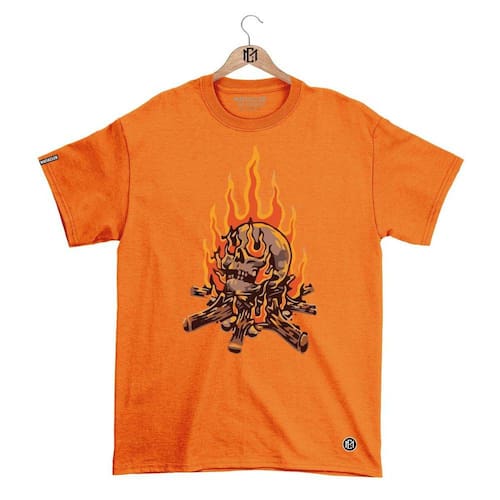 Camiseta Mafiaclub Gola Redonda Estampa CAVEIRA FOGO Streetwear fio 30.1 Penteado - Laranja - M