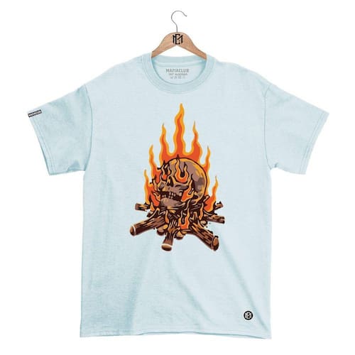 Camiseta Mafiaclub Gola Redonda Estampa CAVEIRA FOGO Streetwear fio 30.1 Penteado - Azul Claro - P