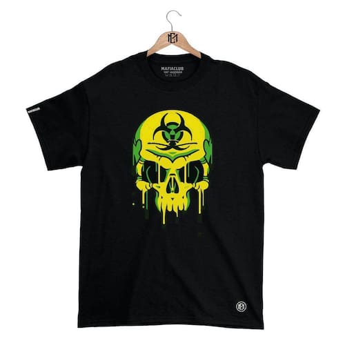 Camiseta Mafiaclub Gola Redonda Estampa CAVEIRA RADIOATIVA Streetwear fio 30.1 Penteado - Laranja - G
