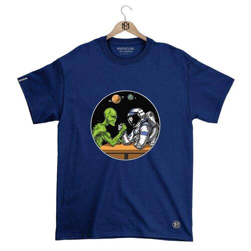 Camiseta Mafiaclub Gola Redonda Estampa ET vs ASTRO Streetwear fio 30.1 Penteado. - Azul Petróleo - P
