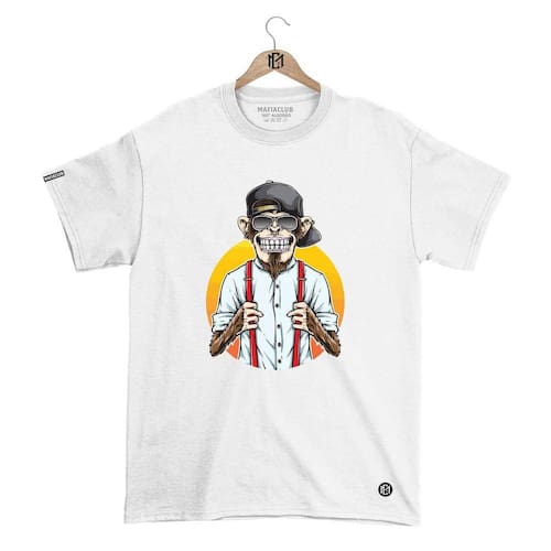Camiseta Mafiaclub Gola Redonda Estampa MONKEY ll Streetwear fio 30.1 Penteado - Branco - P