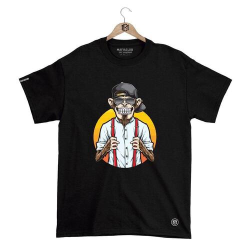 Camiseta Mafiaclub Gola Redonda Estampa MONKEY ll Streetwear fio 30.1 Penteado - Preto - M