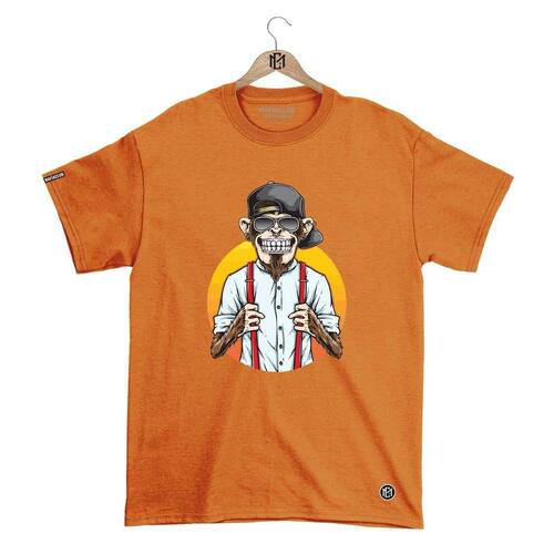 Camiseta Mafiaclub Gola Redonda Estampa MONKEY ll Streetwear fio 30.1 Penteado - Laranja - M