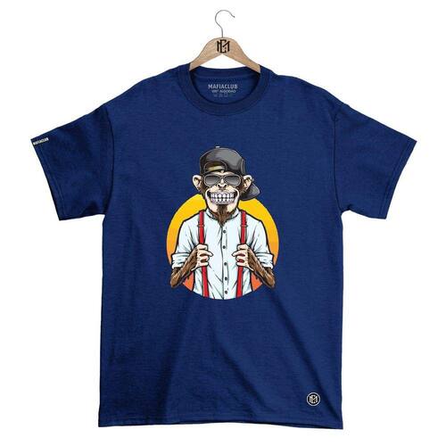Camiseta Mafiaclub Gola Redonda Estampa MONKEY ll Streetwear fio 30.1 Penteado - Azul Petróleo - P