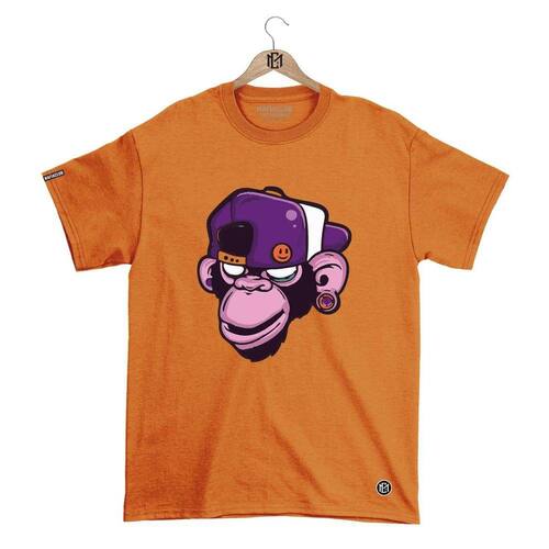 Camiseta Mafiaclub Gola Redonda Estampa MONKEY lll Streetwear fio 30.1 Penteado. - Laranja - P