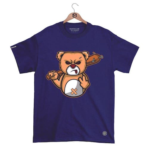 Camiseta Máfiaclub Gola Redonda Estampa URSO BRABO Streetwear fio 30.1 Penteado. - Azul Petróleo - M