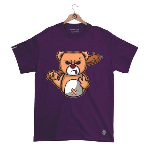 Camiseta Máfiaclub Gola Redonda Estampa URSO BRABO Streetwear fio 30.1 Penteado. - Roxo - M