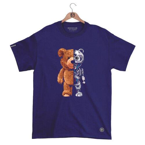 Camiseta Máfiaclub Gola Redonda Estampa URSO ROBO Streetwear fio 30.1 Penteado. - Azul Petróleo - P