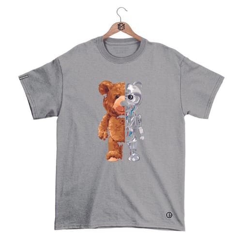 Camiseta Máfiaclub Gola Redonda Estampa URSO ROBO Streetwear fio 30.1 Penteado. - Cinza - M