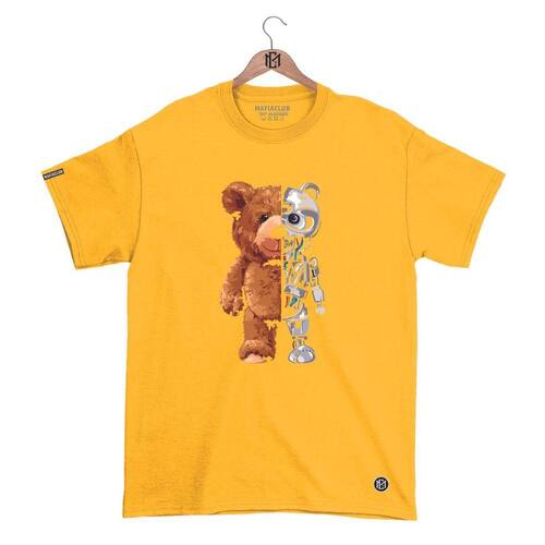 Camiseta Máfiaclub Gola Redonda Estampa URSO ROBO Streetwear fio 30.1 Penteado. - Amarelo - M