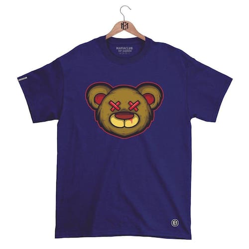 Camiseta Máfiaclub Gola Redonda Estampa URSO XX Streetwear fio 30.1 Penteado. - Azul Petróleo - G