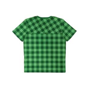 A camiseta é toda estampada, inclusive a gravata borboleta.
