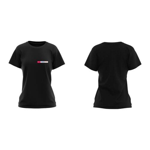 Camiseta exclusiva Grupo Casas Bahia. Apresenta a logomarca na extensão do lado direito no peito em silk scren colorida. Camiseta em malha 100% algodão, modelo Baby Look em manga curta na cor preta