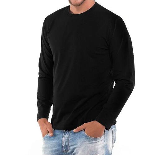 Camiseta Manga Longa Masculino 100% Algodão C15 - Preto - G