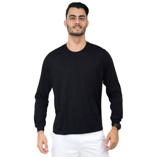 Camiseta básica, manga longa é confeccionada em malha Poliviscose ANTIPILLING.