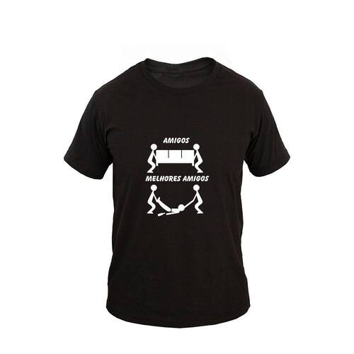 Camiseta Masculina Algodão Manga Curta Melhores Amigos - Preto - P