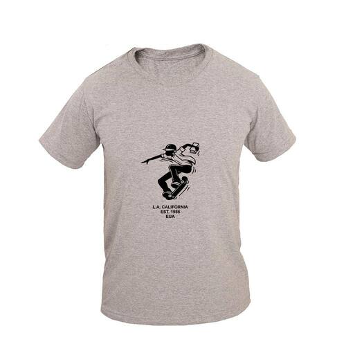Camiseta Masculina Casual Algodão Manga Curta Skate Study - Cinza - P