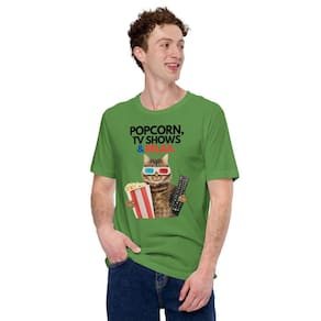 Fique pronto para momentos únicos com a Camiseta Masculina - Cat Fun Popcorn