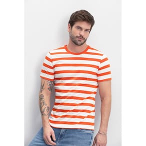 Camiseta masculina com listras Essendi Camiseta Listrada Street Masculina Essendi P - Laranja - XXG