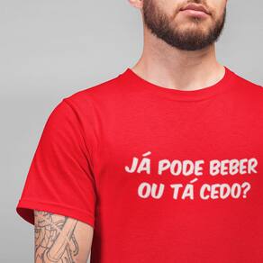 Camiseta Masculina Divertida Já Pode Beber ou Tá Cedo Humor - Vermelho - GG