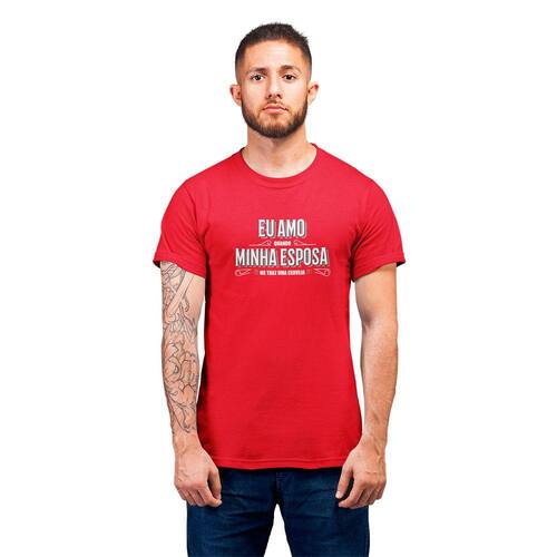 Camiseta Masculina Eu Amo Minha Esposa Frase Cerveja Breja - M - Vermelho