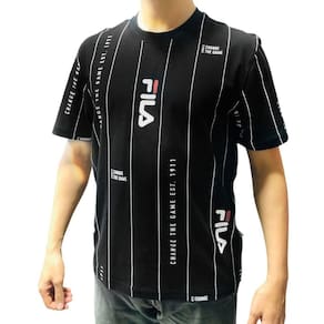 Camiseta masculina confeccionada em malha de poliéster com textura quadriculada. A modelagem raglan com manga curta proporciona maior liberdade de movimentos. As laterais deslocadas para frente e as costuras sem atrito com o corpo garantem maior conforto durante o uso. Possui gola careca, cobregola pespontado, e maxi estampa Fila Letter Outline em alto relevo centralizada na parte frontal.