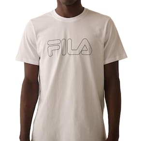 Camiseta masculina confeccionada em meia malha premium de algodão. Possui modelagem slim fit, mais ajustada ao corpo, com manga curta. Possui gola careca em ribana e estampa FILA Linear à base d'água centralizada na parte frontal superior.