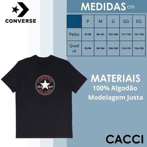 Estilo Icônico: O Patch Chuck Taylor estampado no centro da camiseta é uma homenagem ao legado da Converse, agregando personalidade e autenticidade ao seu look.