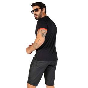 Camiseta Masculina Gola O, possui as mangas curtas e modelagem justa ao corpo. A personalização frontal da peça é o seu diferencial, dando um realce a camiseta. O modelo possui listra frontal, dando um diferencial à peça.