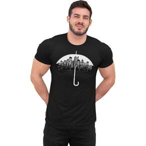 Camiseta Masculina Guarda-Chuva Cidade Grande Garoa Prédios