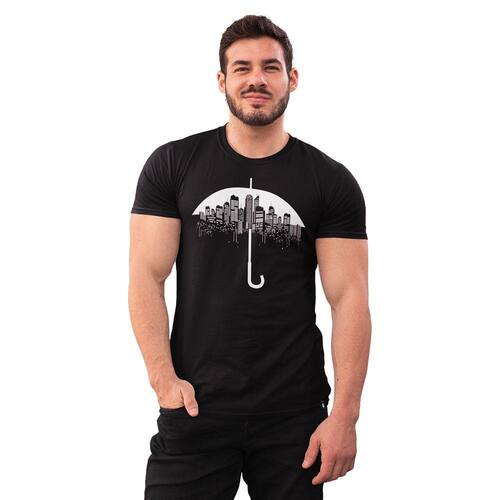 Camiseta Masculina Guarda-Chuva Cidade Grande Garoa Prédios