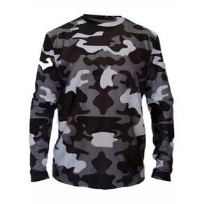 Camiseta Manga Longa com Proteção Solar UV50+.Tecido tecnológico com proteção Uv50+.Composição do tecido: 85% poliéster, 15% elastano.Cor: camuflado cinza/preto/branco.Tamanhos: P ao XG.Consulte a tabela de medidas nas fotos.Ideal para ciclistas, motociclistas e praticantes de esportes como: vôlei de praia, beach tennis, futevôlei, futebol de areia, pesca e outros.