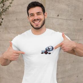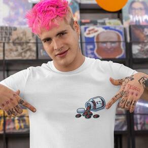 Esta camiseta é uma dose de música para o seu guarda-roupa! Com uma estampa divertida de 'pílulas de vinil', você traz o ritmo e a vibe dos discos para o seu visual. Vista essa camiseta e esteja pronto para dar uma dose de estilo musical onde quer que vá. É hora de dar o play na moda!
