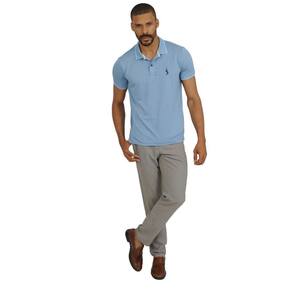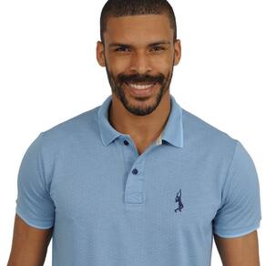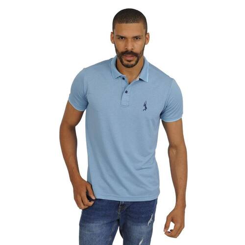 Camiseta Masculina Polo John Pull Manga Curta Moda Casual - Azul Claro - GG
