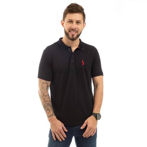 Camiseta Masculina Polo John Pull Manga Curta Moda Casual - Preto - P