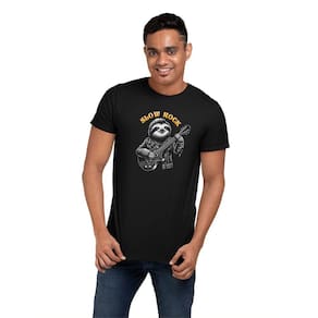 Camiseta Masculina Slow Rock Songs Bicho Preguiça Guitarra - Preto - G