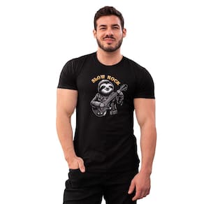 Camiseta Masculina Slow Rock Songs Bicho Preguiça Guitarra