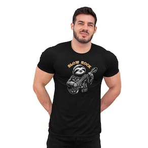 Esta camiseta é uma celebração do ritmo relaxado da preguiça combinado com o poder do rock! Com um bicho-preguiça tocando um 'rock lento', você adiciona um toque de humor e irreverência ao seu estilo. Vista esta camiseta e entre no groove tranquilo. O ritmo pode ser lento, mas o slow rock dos anos 70,80 e 90 prevalecem até hoje!