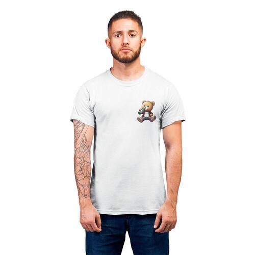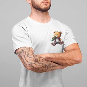 Camiseta Masculina Ursinho Pelúcia Estiloso Bebendo Cerveja