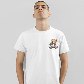 Esta camiseta é a definição de ursinho amoroso com um toque de rebeldia!