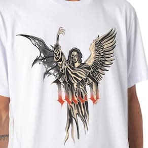 Camiseta MCD feita em malha penteada 30.1, estampa frontal e etiquetas personalizadas.